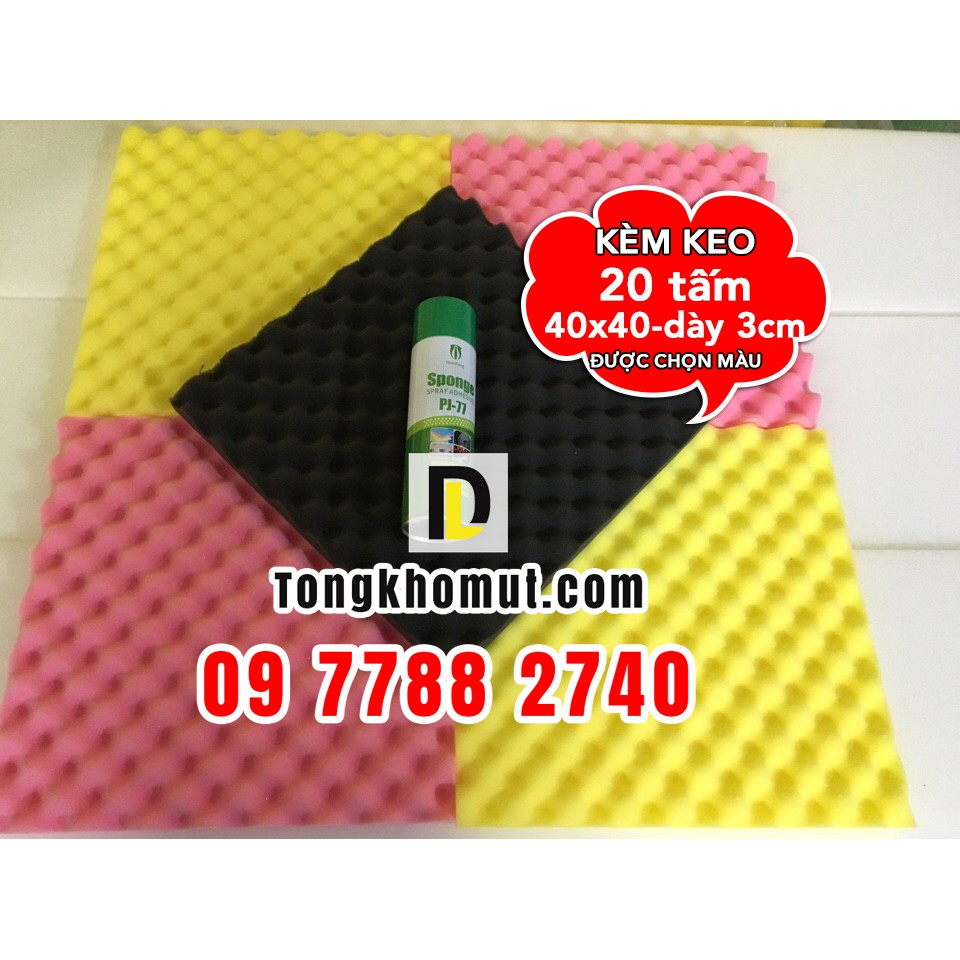 [Kèm KEO XỊT] + 20 tấm Mút tiêu âm, cách âm 40x40 - dày 3cm/tấm - hình trứng (hột gà ) cho phòng thu