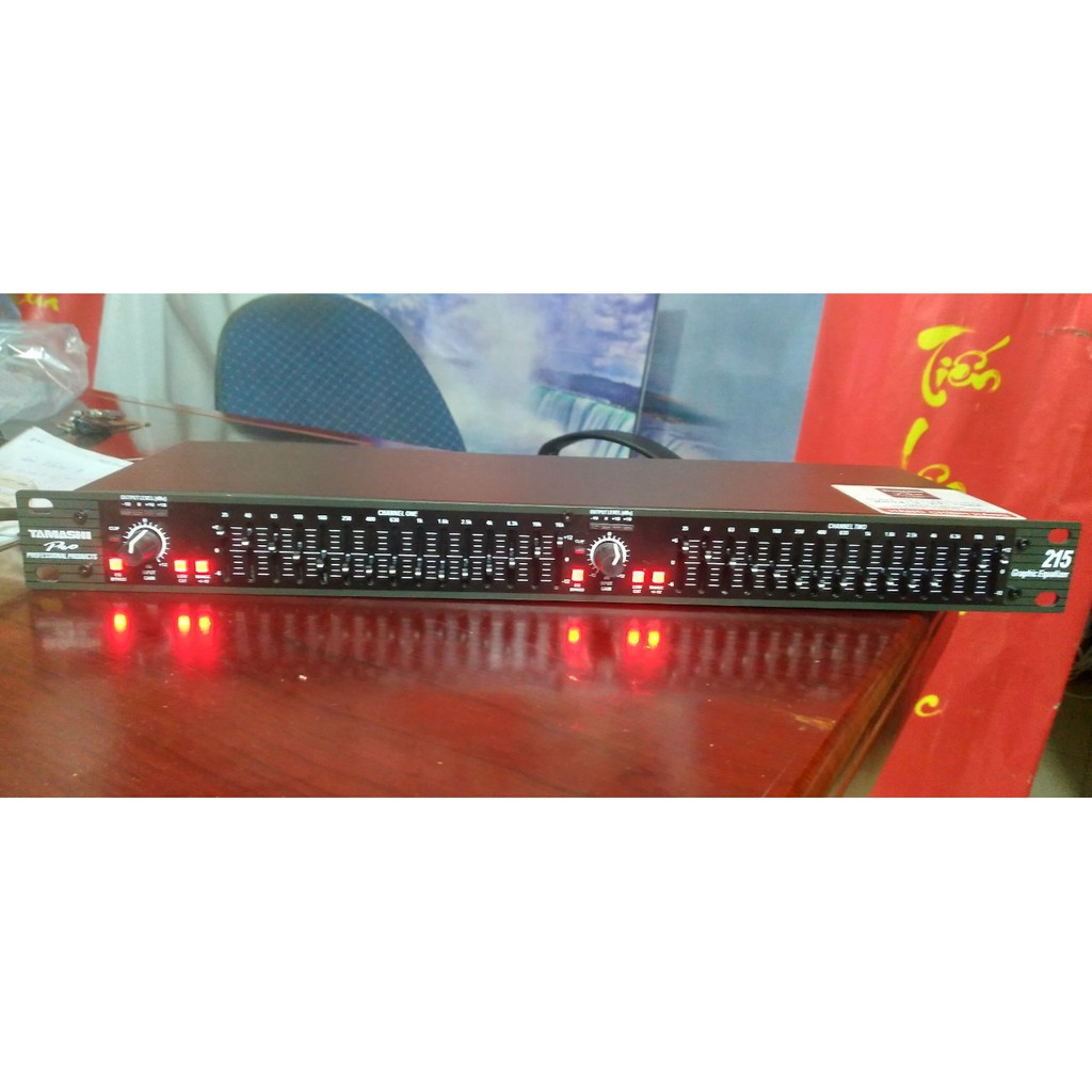 Thiết bị xử lý âm thanh Equalizer tamashi 215 bao gồm hai kênh 31-band có cân bằng 1/3-octave, tăng đầu vào ± 12 dB, có thể chuyển đổi ± 6 dB hoặc dải tăng / giảm ± 12 dB, thanh trượt không dẫn điện 20mm, giao diện người dùng trực quan và đo lượng đầu ra