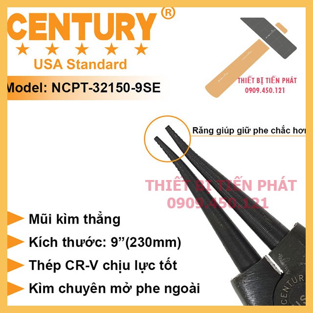 Nhà cửa & Đời sống > Dụng cụ & Thiết bị tiện ích > Dụng cụ > Kìm || Kềm Mở Phe, Kìm Mở Phe 7" (175mm), 9'' (225mm), 13'' (325mm) Ra Thẳng CENTURY Mã NCPT-32150-9SE Với Thép Tốt.Còn hàng