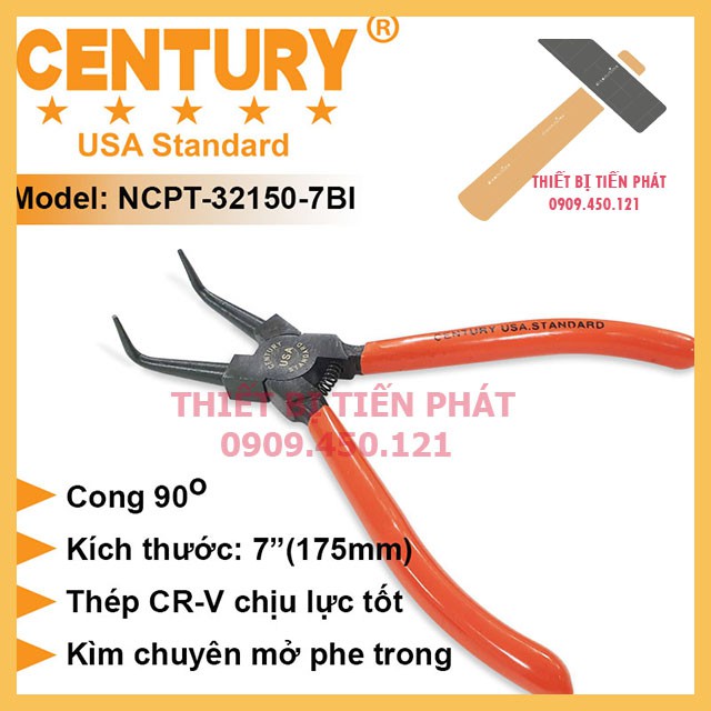Kềm Mở Phe, Kìm Mở Phe 7" (175mm), 9'' (225mm), 13'' (325mm) Vô Cong CENTURY Mã NCPT-32150-7BI, Bằng thép tốt.