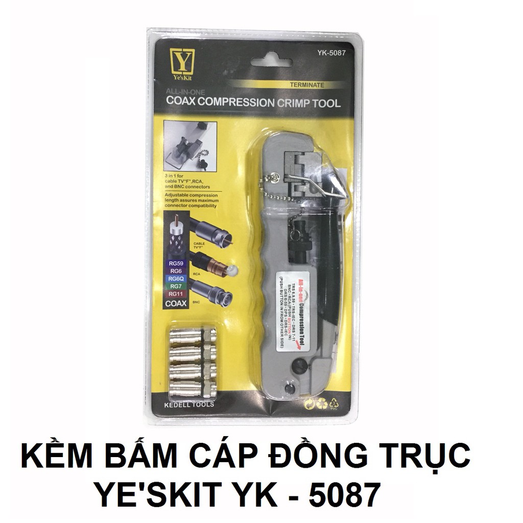 Nhà cửa & Đời sống > Dụng cụ & Thiết bị tiện ích > Dụng cụ > Kìm || KỀM NHẤN CÁP ĐỒNG TRỤC YE'S KIT YK - 5087Còn hàng