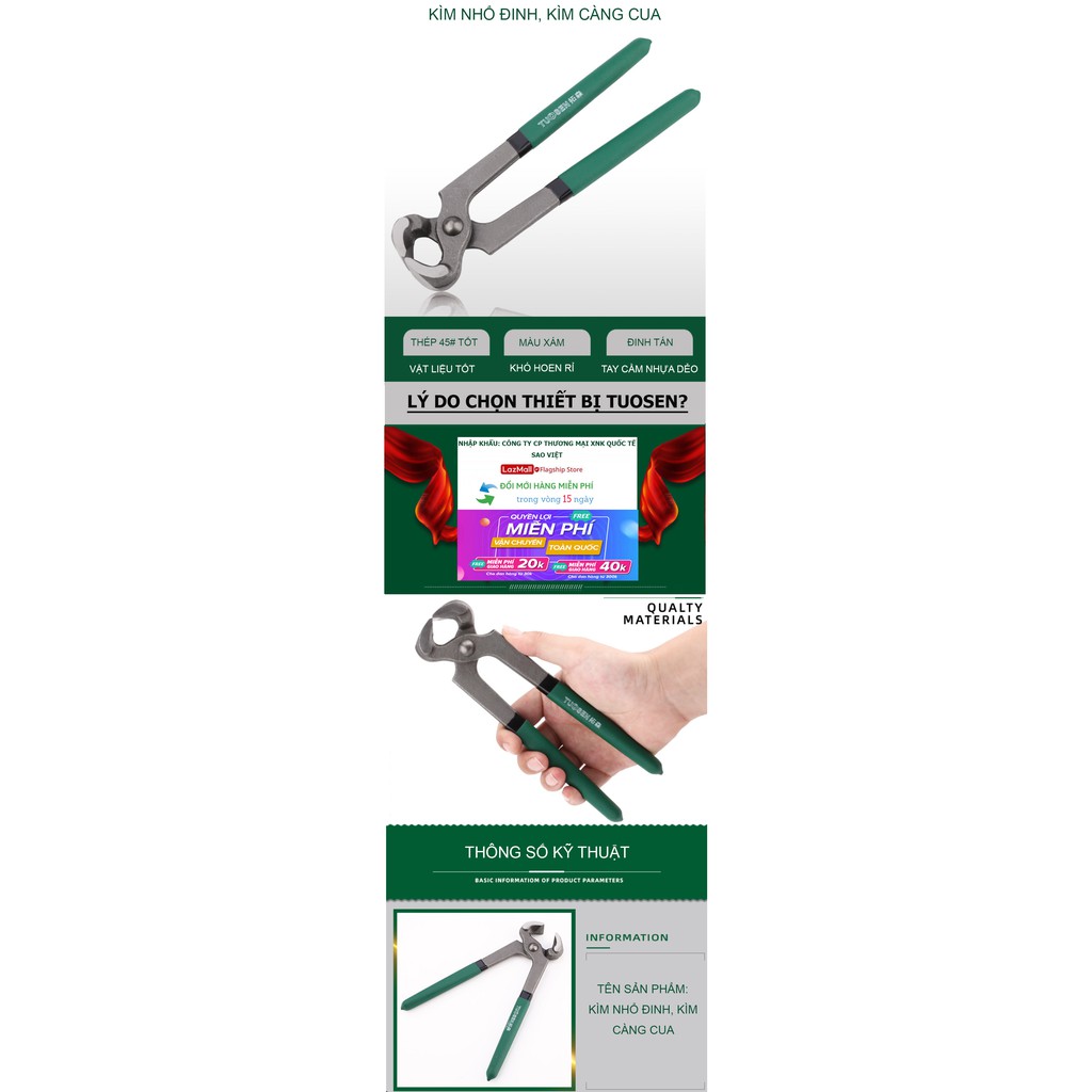 Giới thiệu Kềm nhổ đinh, kìm càng cua, kìm cắt đinh TUOSEN