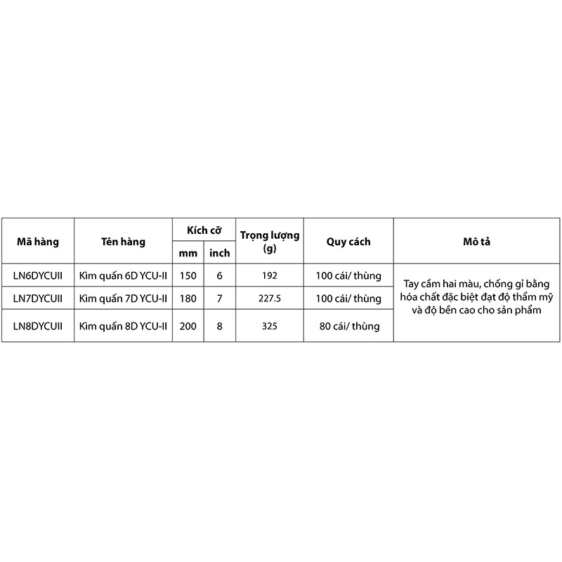 Nhà cửa & Đời sống > Dụng cụ & Thiết bị tiện ích > Dụng cụ > Kìm || Kềm Nhọn, Kìm nhọn YCU - II Full Size 6'' (150mm) - 7'' (175mm) - 8'' (200mm) Cao Cấp (Chính Hãng)Còn hàng