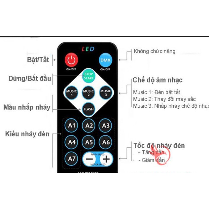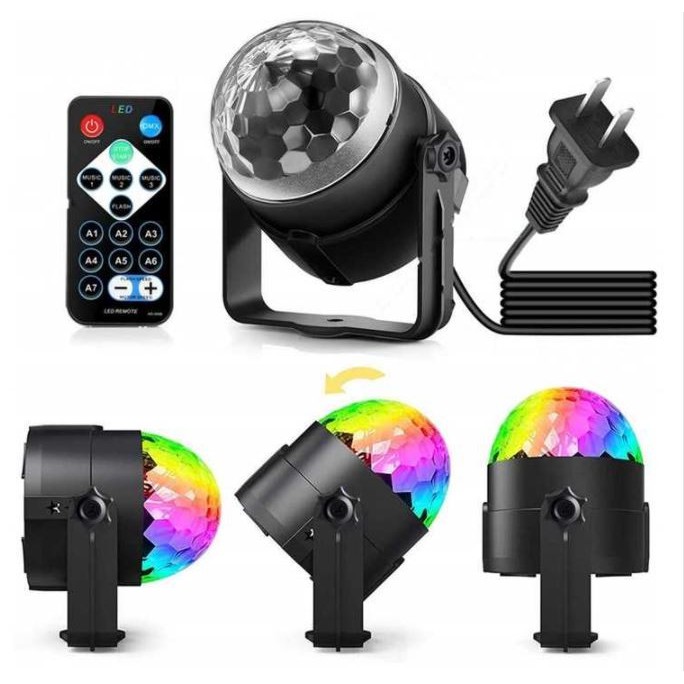 Giới thiệu (KÈM REMOTE) Đèn led 7 màu xoay 360 độ ,cảm ứng âm thanh nháy theo nhạc cực đẹp - Đèn trang trí sân khấu,gia đình