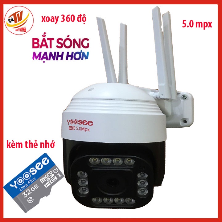 kem thẻ 32gb 64gb] camera wifi 5.0 ngoài trời ptz xoay 360 độ- trong nhà camera yoosee 4 Râu 5.0 Mpx full hd 2048p