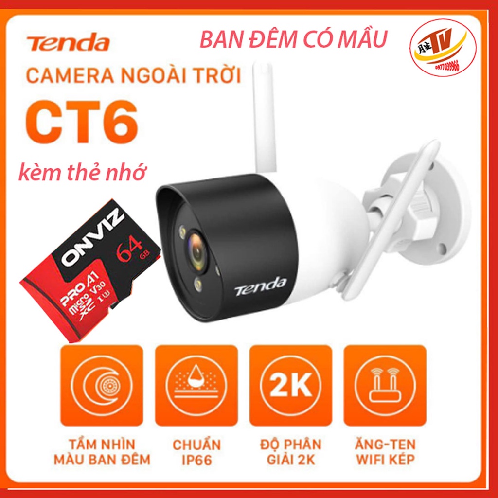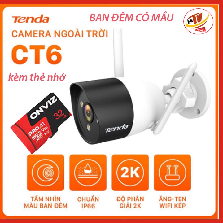 Cameras & Flycam > Camera giám sát > Camera giám sát kết nối internet || [kèm thẻ 32gb 64gb] Camera Wifi Ngoài Trời Tenda CT6 Độ Phân Giải 2K camera giám sát ip ngoài trời ban đêm có mầuCòn hàng