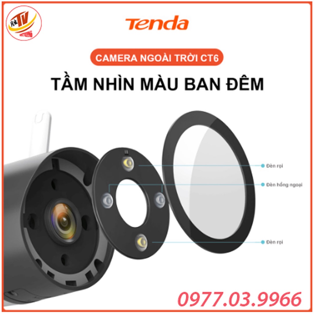 [kèm thẻ 32gb 64gb] Camera Wifi Ngoài Trời Tenda CT6 Độ Phân Giải 2K camera giám sát ip ngoài trời ban đêm có mầu