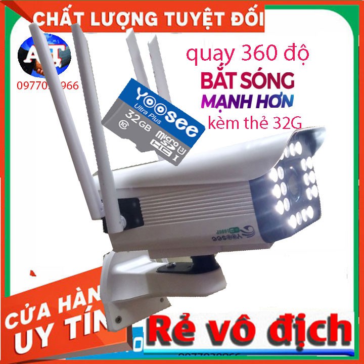 [kèm thẻ 32gb 64gb] camera yoosee thân ngoài trời quay 360 độ 10 đèn led 10 đèn hồng ngoại ban đêm có mầu