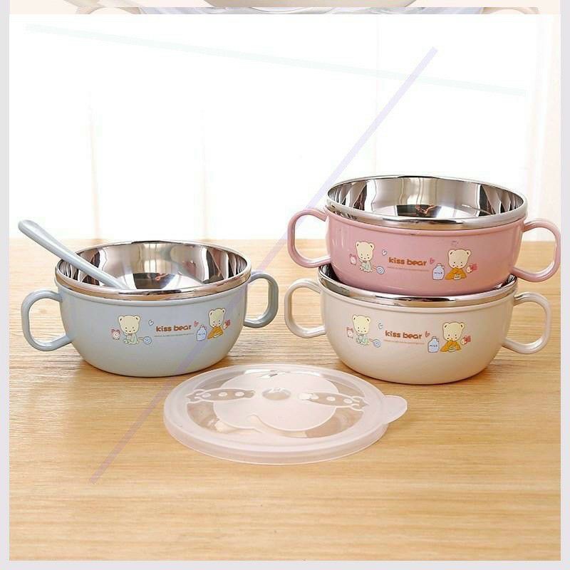 Bát/chén Inox 2 lớpchất liệu inox sáng bóng, lớp nhựa cao cấp bên ngoài giúp cách nhiệt, nắp nhựa dẻo đậy kín dễ vệ sinh, có kèm thìa