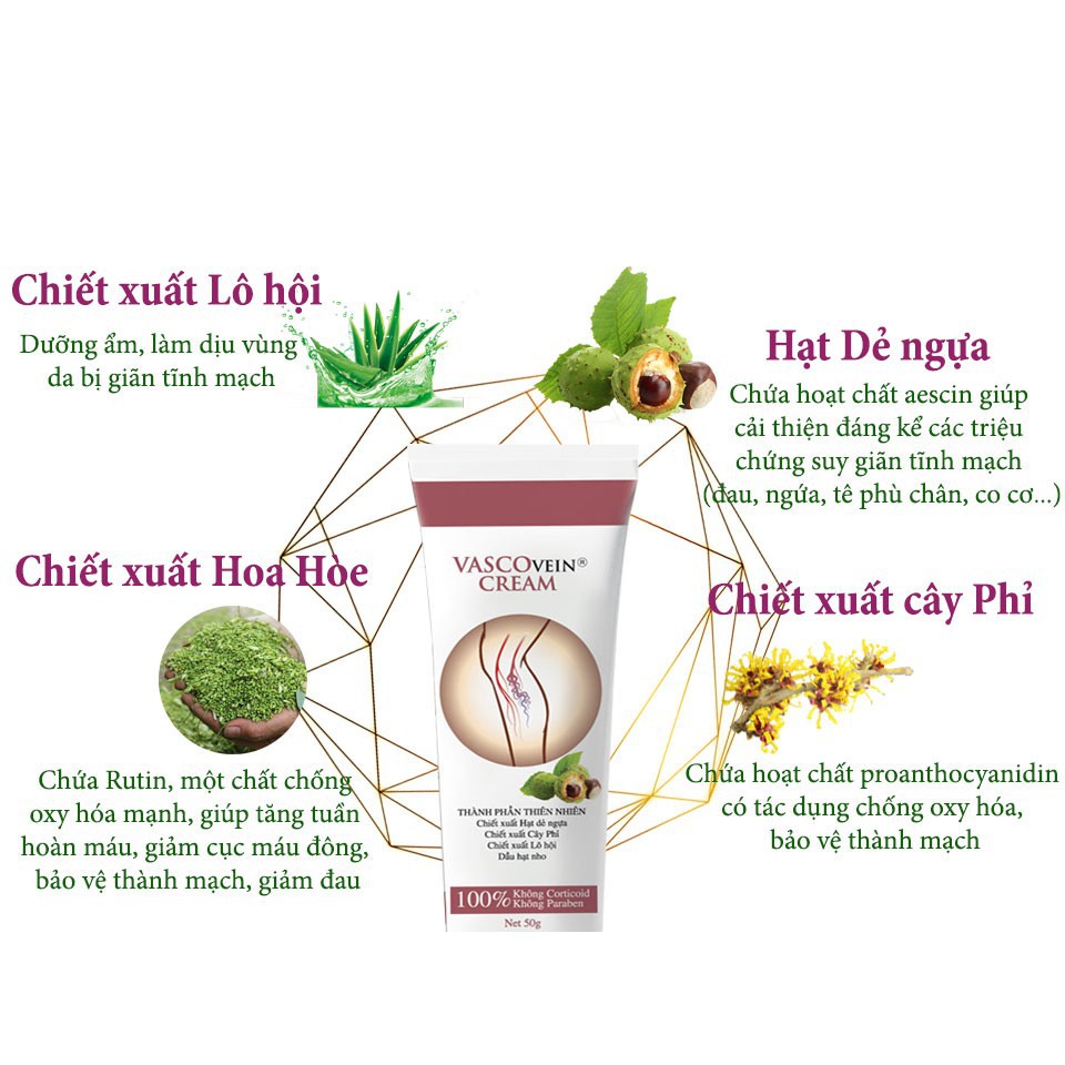 Thành phần Kem thoa Hỗ Trợ Suy Giãn Tĩnh Mạch Vascovein: