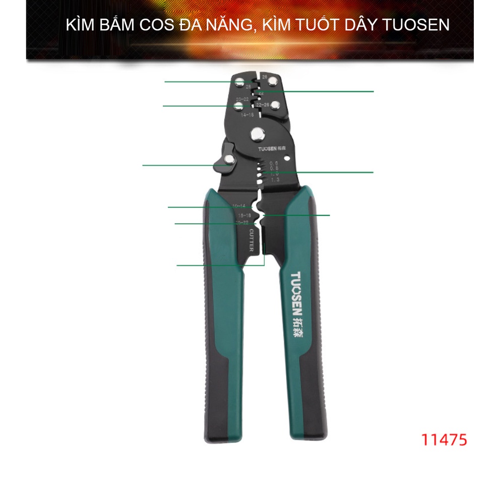 Kềm tuốt dây điện 8inch, kìm tước tước dây điện 8inch, kềm bấm cos đa năng 11475 TUOSEN / Tuo Sen
