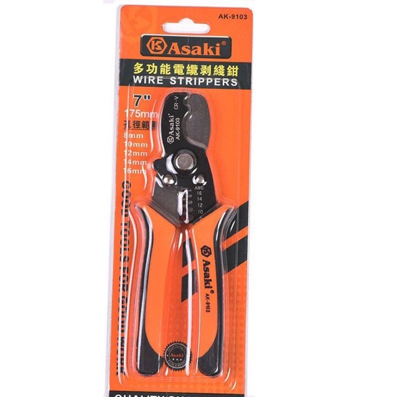 - Đặc biệt với chức năng tuốt thì kìm đa năng asaki 7 inch có kích thước từ 8 - 10 - 12 - 14 - 16 thích hợp cho việc tuốt nhiều loại dây điện.