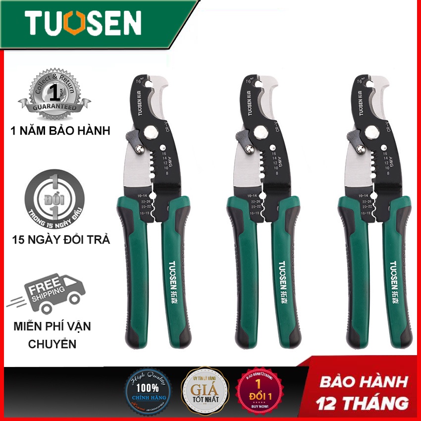Nhà cửa & Đời sống > Dụng cụ & Thiết bị tiện ích > Dụng cụ > Kìm || Kềm tuốt dây điện, kìm tước tước dây điện 8inch, kềm bấm cos đa năng 11468 - TUOSEN / Tuo SenCòn hàng