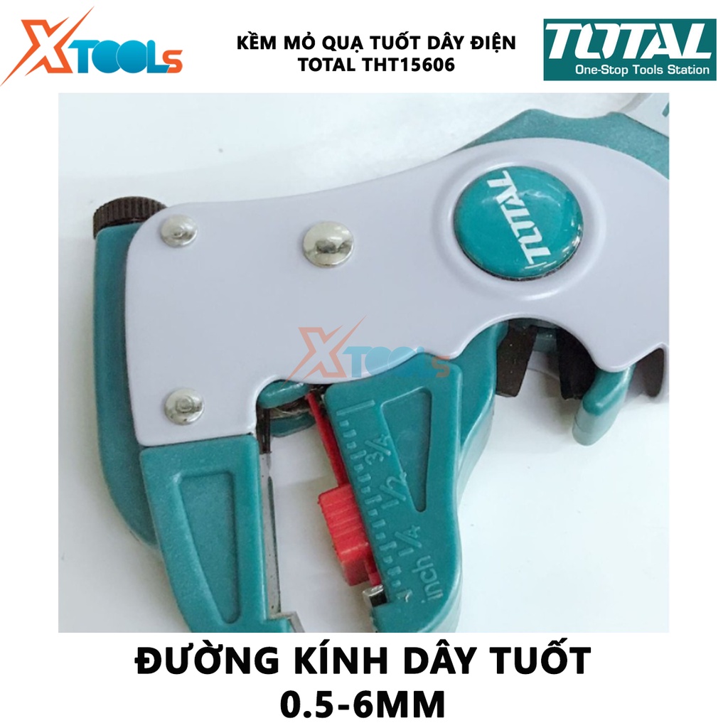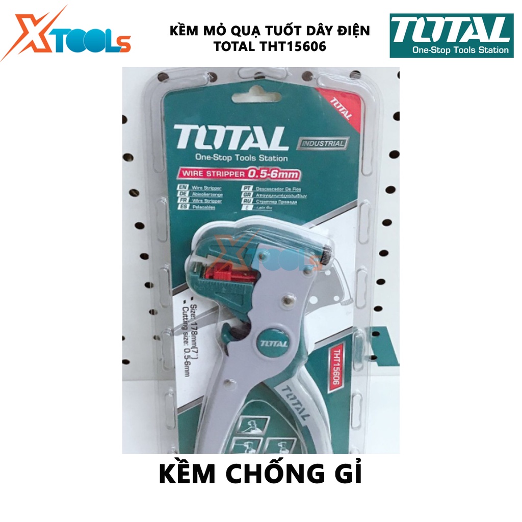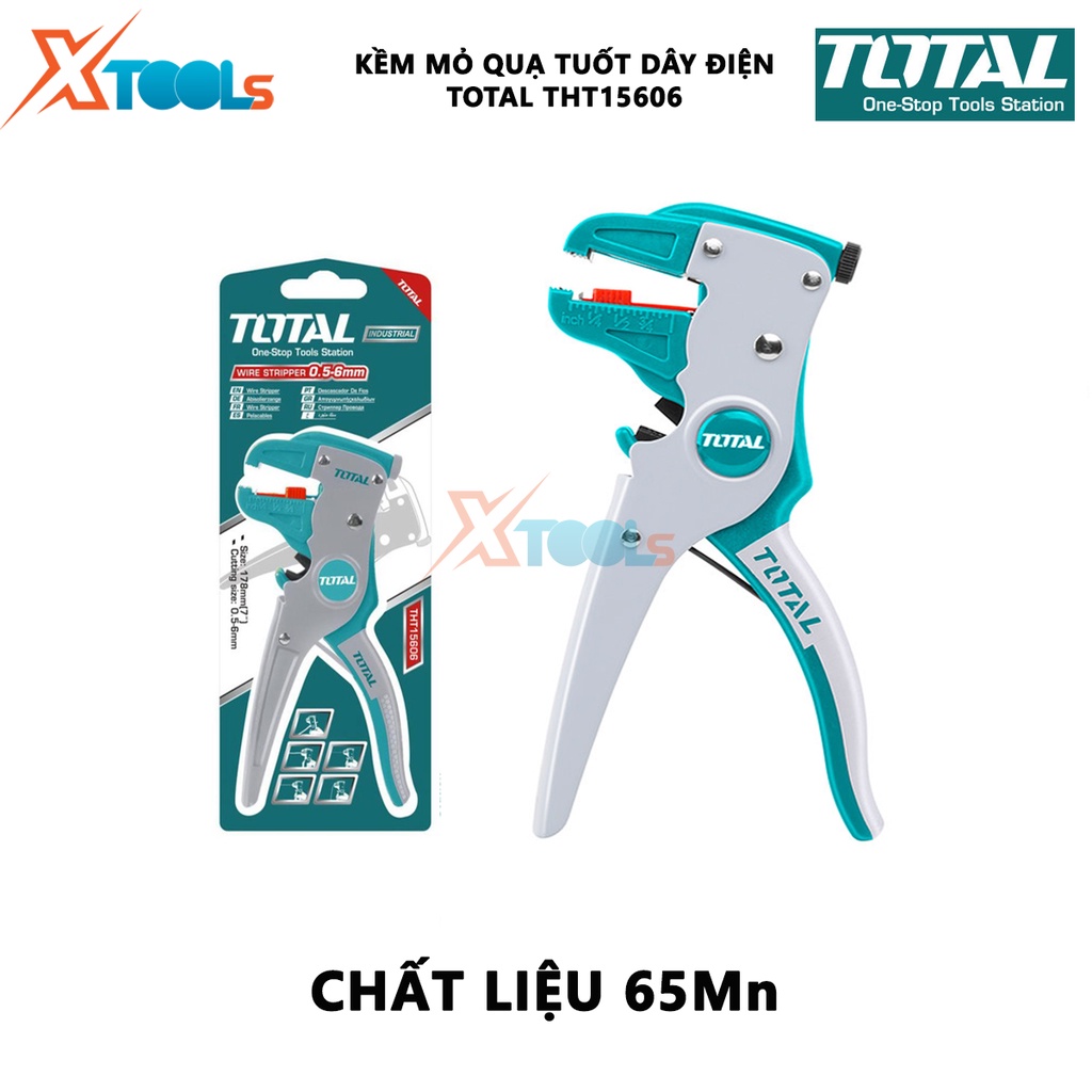 - Kềm tuốt dây điện mỏ quạ 175mm Total THT15606 là dụng cụ chuyên dụng cho việc tuốt dây điện mà không tác động quá nhiều hay làm hư hỏng phần lõi bên trong, có thể cắt, tuốt từ 10 – 20 loại dây. Nếu bạn làm công việc như lắp đặt, sửa chữa trong ngành điện, bảo dưỡng, bảo trì các thiết bị điện gia dụng, ô tô,…thì đây là sản phẩm hỗ trợ đắc lực, hiệu quả không nên bỏ qua.