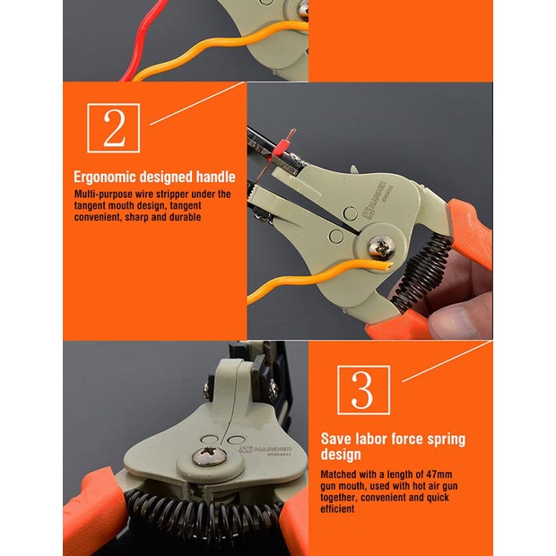 Phạm vi tuốt dây điện: (10AW - 24AW) (0.2mm2 - 6mm2)