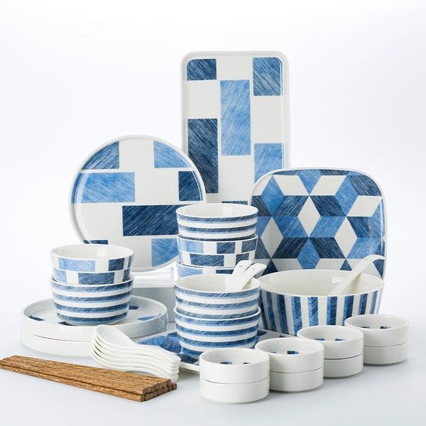 Nhà cửa & Đời sống > Bộ đồ bàn ăn > Tô || (Kèm vali) Bộ bát sứ cao cấp ♥️𝐅𝐑𝐄𝐄 𝐒𝐇𝐈𝐏♥️ Bộ bát sứ denim 50 món phong cách Châu Âu hiện đạiCòn hàng