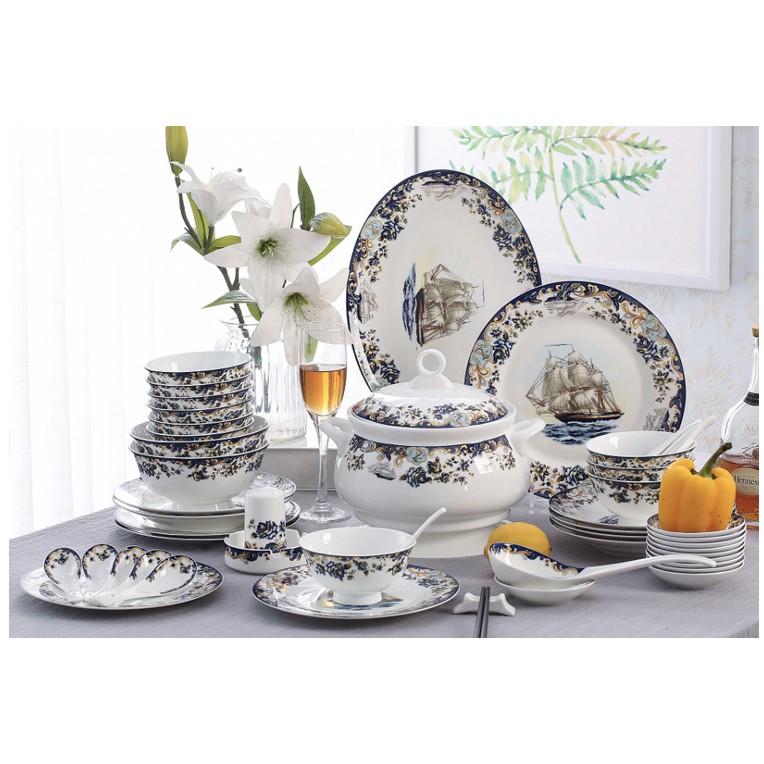 Nhà cửa & Đời sống > Bộ đồ bàn ăn > Tô || (Kèm vali) Bộ bát sứ xương cao cấp ♥️𝐅𝐑𝐄𝐄 𝐒𝐇𝐈𝐏♥️ Bộ bát sứ xương KENDALL 58 món phong cách Châu ÂuCòn hàng