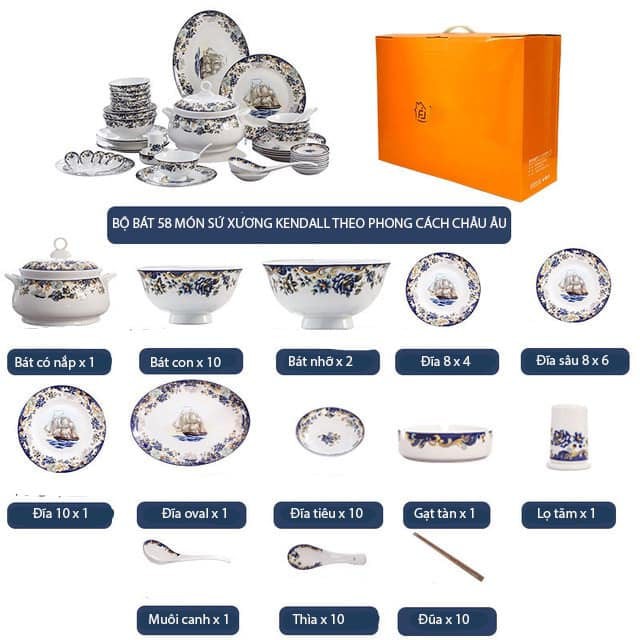 ♥️♥️♥️BỘ BÁT SỨ XƯƠNG KENDALL 58 MÓN PHONG CÁCH CHÂU ÂU SANG TRỌNG ♥️♥️♥️🍀 THÔNG TIN SẢN PHẨM