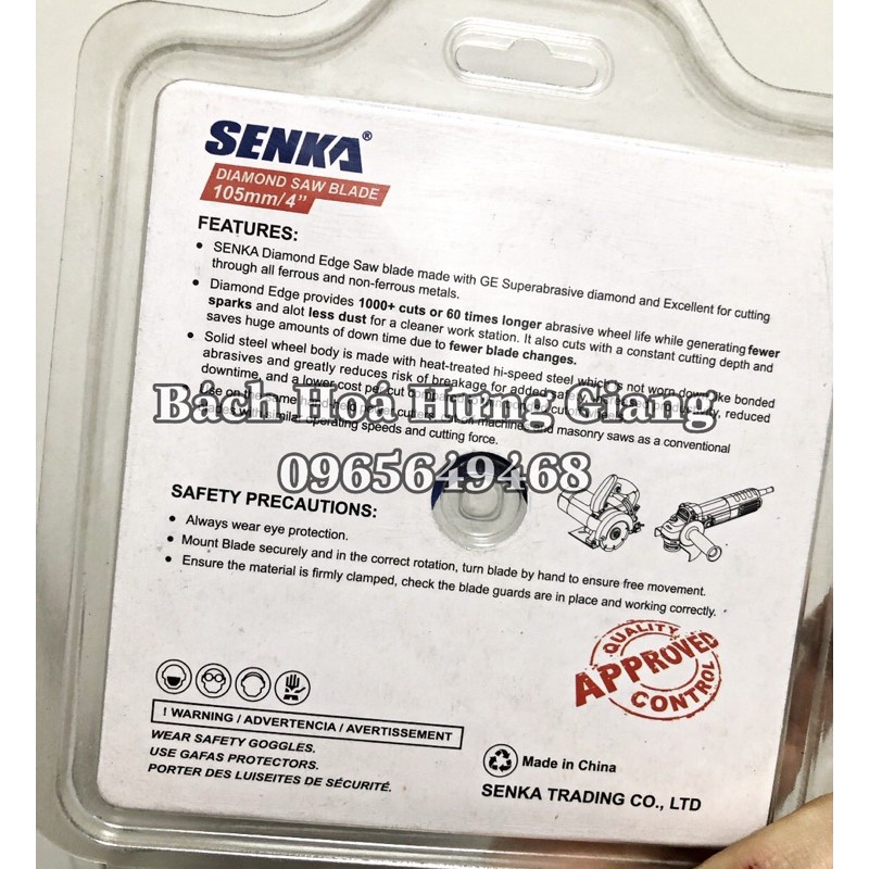Lưỡi cắt kim cương đa năng SENKA 105mm/4'' cắt KIM LOẠI & PHI KIMThành phần hợp kim từ hạt kim cương nhân tạo siêu ăn mòn nhập khẩu Đức, theo công nghệ hàn đồng chân không (Vacuum Brazed) trên nền xử nhiệt độ cao giúp kim cương có độ ăn mòn và bám dính tuyệt hảo cho cắt mọi loại vật liệu KIM LOẠI & PHI KIM;