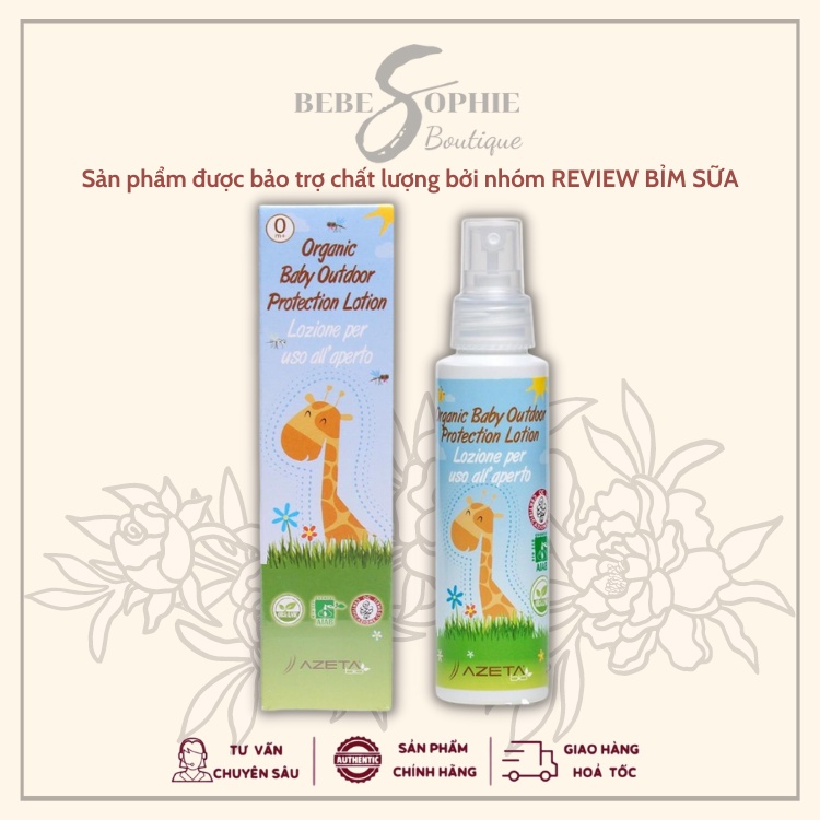 Thuốc xịt chống muỗi và côn trùng Azetabio Organic được sản xuất tại Ý với thành phần hữu cơ tự nhiên, giúp bảo vệ bé khỏi muỗi, côn trùng đốt, ngăn ngừa trẻ bị mắc các bệnh truyền nhiễm như sốt xuất huyết...Sản phẩm dạng kem xịt nhẹ nhàng, được kiểm nghiệm không gây kích ứng da, tuyệt đối an toàn cho sức khỏe bé.Với thành phần hữu cơ 100% được sản xuất từ các hương liệu thiên nhiên như tinh dầu oải hương, tinh dầu cây phong lữ,... sản phẩm không chỉ chống muỗi hiệu quả mà còn dưỡng da nhẹ nhàng, cung cấp độ ẩm và các dưỡng chất cần thiết cho làn da mềm mịn, ẩm mượt.