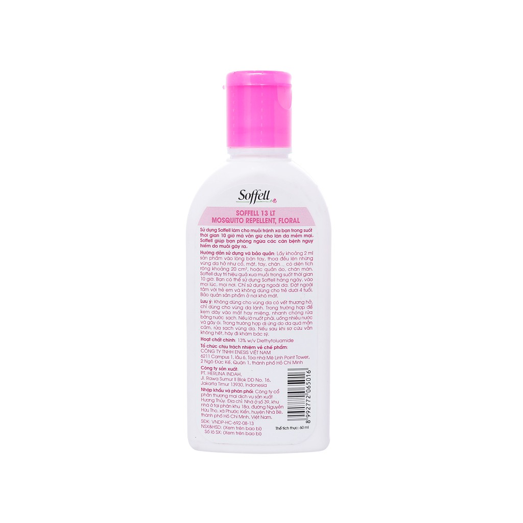 Kem Xua Muỗi Tạo Độ Ẩm Hương Hoa SOFFELL - 60ml