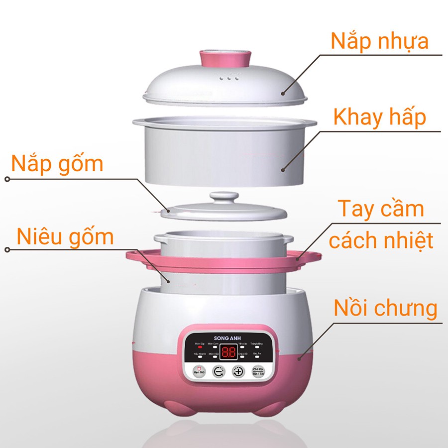 Thiết Bị Điện Gia Dụng > Đồ gia dụng nhà bếp > Nồi nấu chậm & Dụng cụ nấu chân không || [Kèm xửng hấp] Nồi hầm chưng cách thủy Song AnhCòn hàng