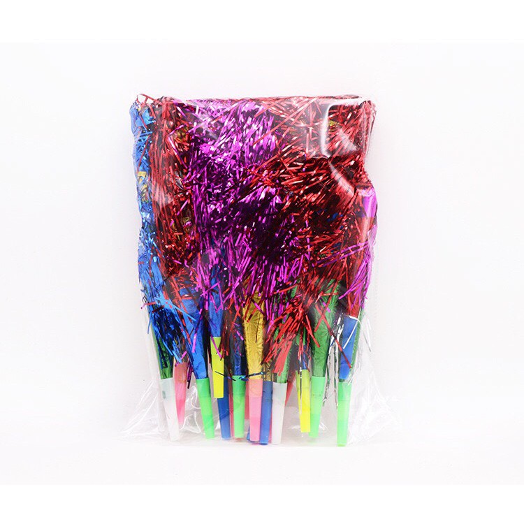 -Kèn Thổi Giấy Tua Rua được làm từ nhựa và giấy phát ra âm thanh vui tai khi thổi.-Thiết kế đơn giản nhỏ gọn dễ dàng mang theo