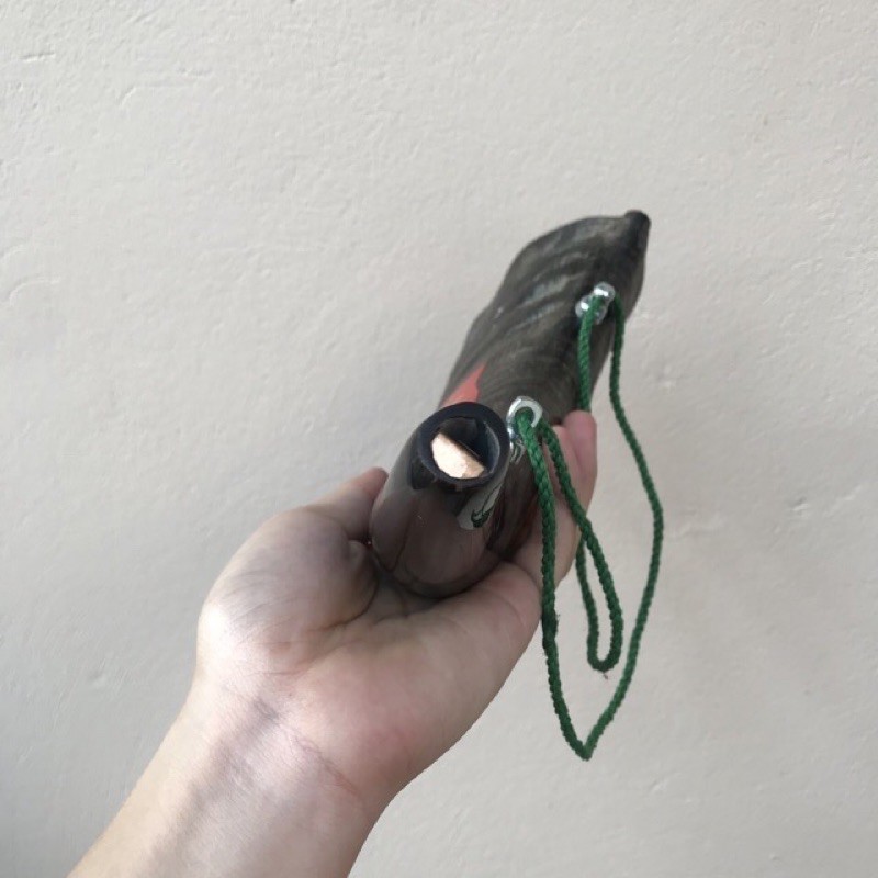 👉 Người thổi sẽ dùng hơi thổi vào phần đáy của chiếc sừng âm thanh sẽ được cộng hưởng và phát ra từ miệng tù và vang rất xa.
