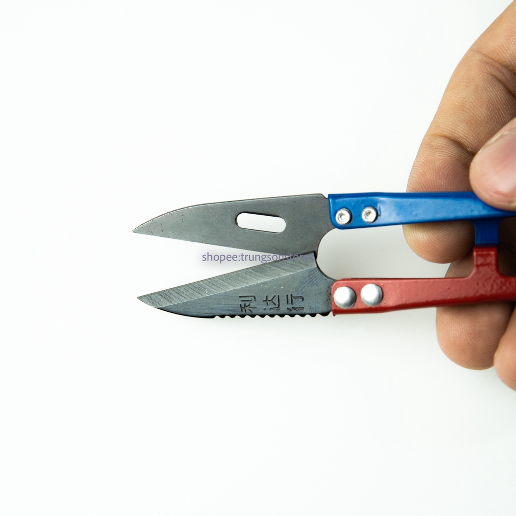 Kéo bấm chỉ cán xanh đỏ liudaxing dùng cắt chỉ trong may vá, kéo sắc bén, dễ cắt, kéo làm bằng thép không rỉ.kéo thiết kế phần cầm tay bằng răng cưa giúp cần không bị cấn tay
