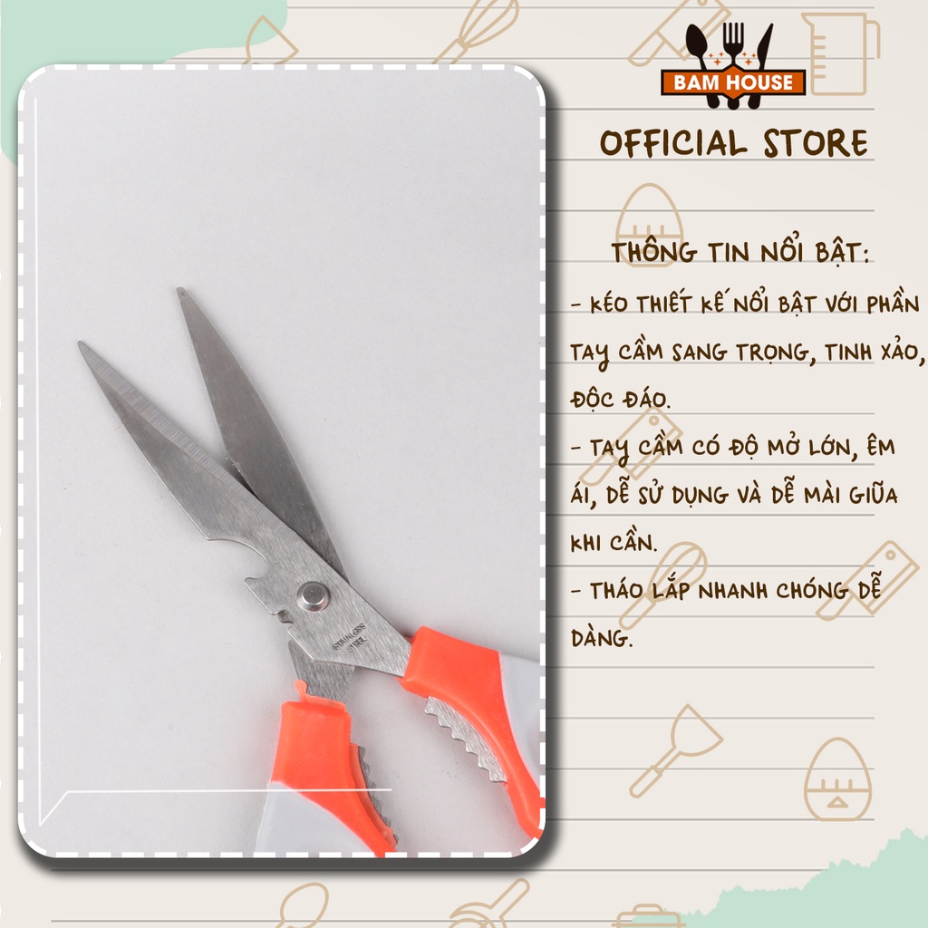 Kéo bếp đa năng inox Bam House mũi dài đầu khui bia cao cấp KA01 – Fuki24Kéo là 1 sản phẩm, là 1 vật dụng không thể thiếu trong các gia đình, văn phòng làm việc, cửa hàng… giúp hỗ trợ cho công việc của bạn được hoàn thành hiệu quả.