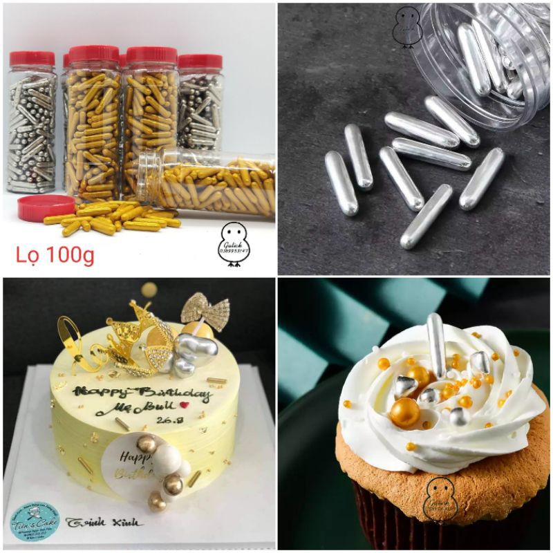 Kẹo bi đường que vàng, bạc phủ bánh ngọt, phủ lên kem, trang trí đồ ăn, topping