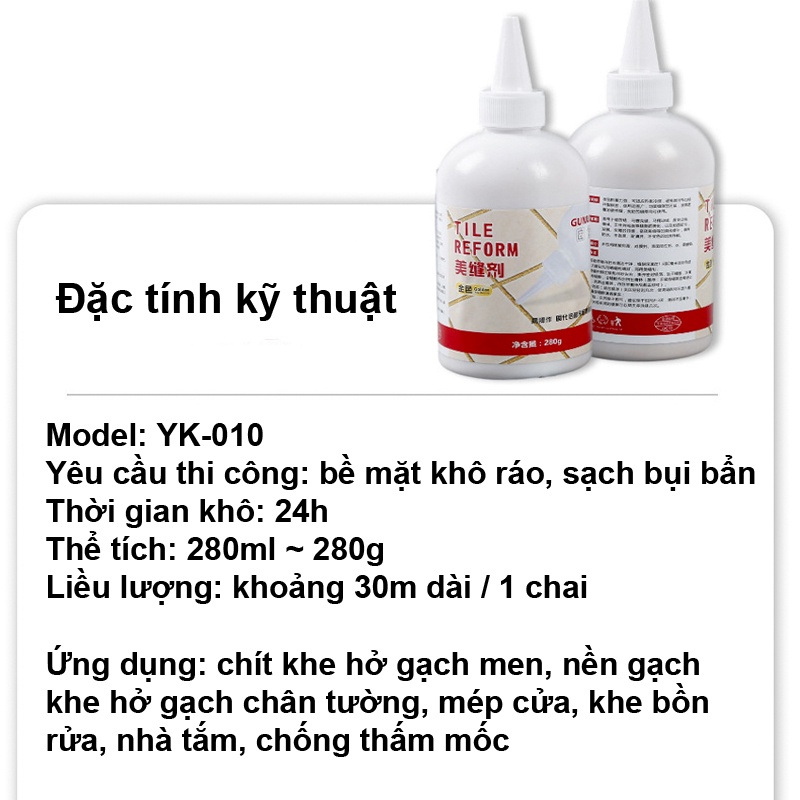 Giới thiệu Keo bít lỗ hở gạch men,Keo chà Ron chỉ gạch,nhà tắm chống thấm và chống nấm mốc, Bạc ánh kim 280g chai lớn