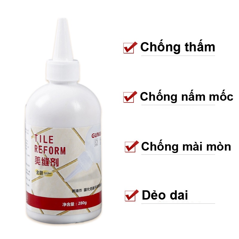 Keo bít lỗ hở gạch men,Keo chà Ron chỉ gạch,nhà tắm chống thấm và chống nấm mốc, Bạc ánh kim 280g chai lớn