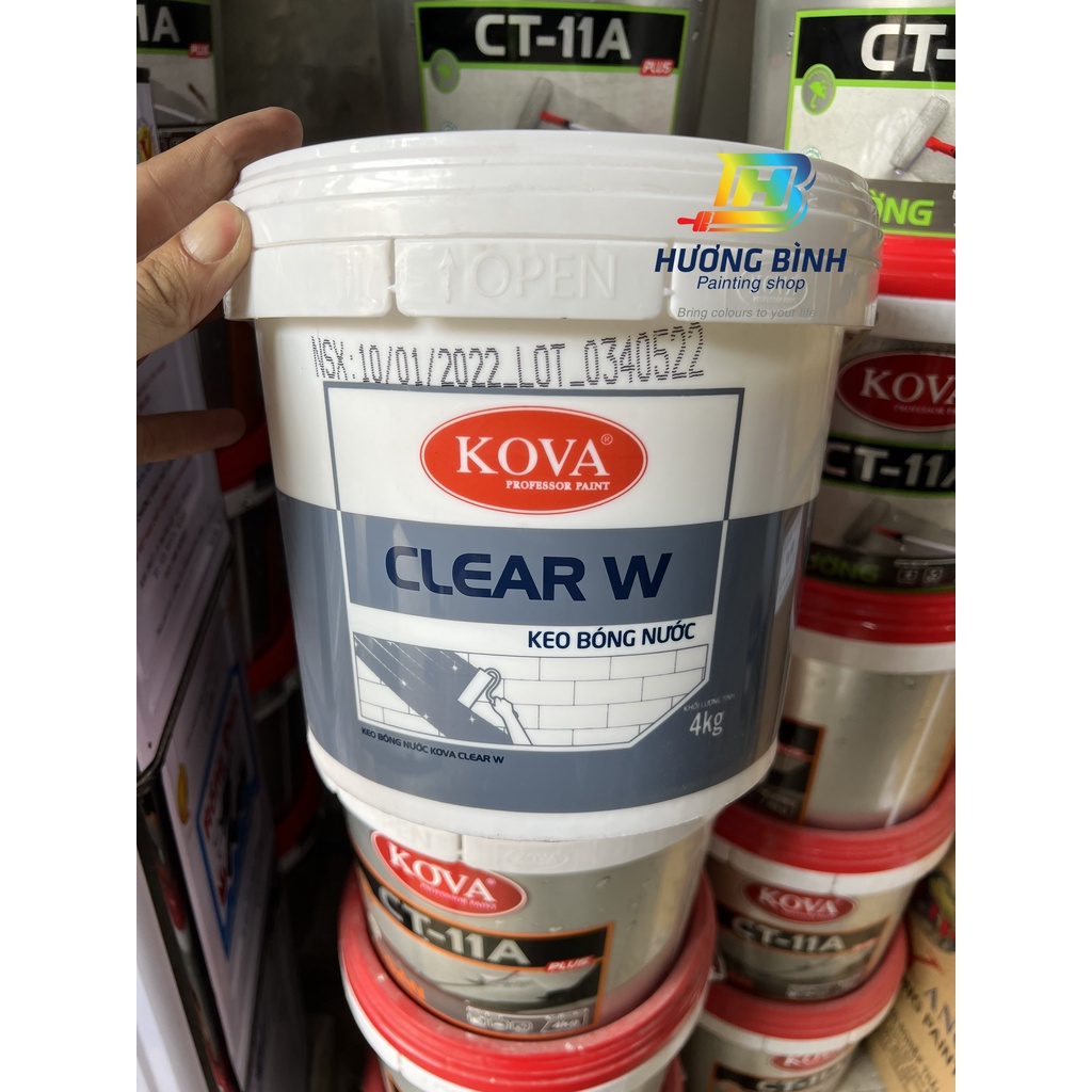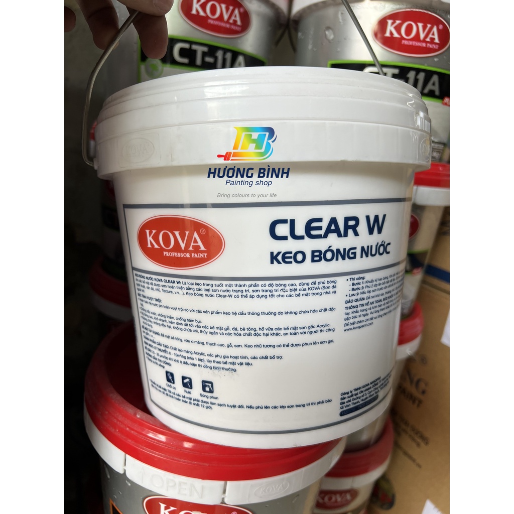 - Keo bóng nước KOVA Clear W là loại keo trong suốt một thành phần có độ bóng cao, dùng để phủ bóng cho các bề mặt đã được sơn hoàn thiện bằng các loại sơn nước trang trí, sơn trang trí đặc biệt của KOVA (Sơn đá nghệ thuật, vân đá, nhũ, Texture, v.v…). Keo bóng nước có thể áp dụng tốt cho các bề mặt trong nhà và ngoài trời.- ĐẶC TÍNH VƯỢT TRỘI: