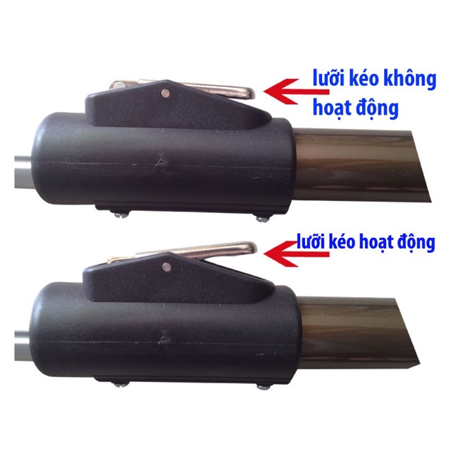 Để đảm bảo lưỡi kéo hoạt động, chốt khóa tăng đưa trên phần thân kéo phải nằm đúng vị trí của từng nấc điều chỉnh độ cao, tức là khi kéo dài cán, người dùng cần nhấn giữ nút khóa này và kéo đầu kéo lên đến độ dài mong muốn, sau đó thả nút khóa ra nhưng đảm bảo đầu kéo không còn di chuyển lên xuống được nữa thì lưỡi kéo sẽ hoạt động.