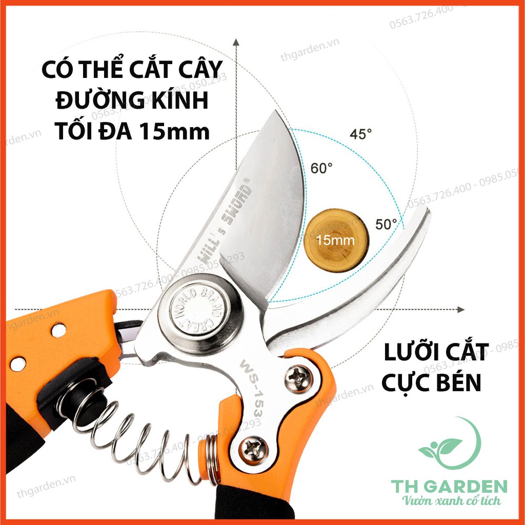 Giới thiệu Kéo Cắt Cành Cây Cao Cấp Siêu Sắc Bén TH153 - Tăng 20 Lần Lực Cắt - Thép SK5 Độ Bền Cao - Đạt Độ Cứng HRC60