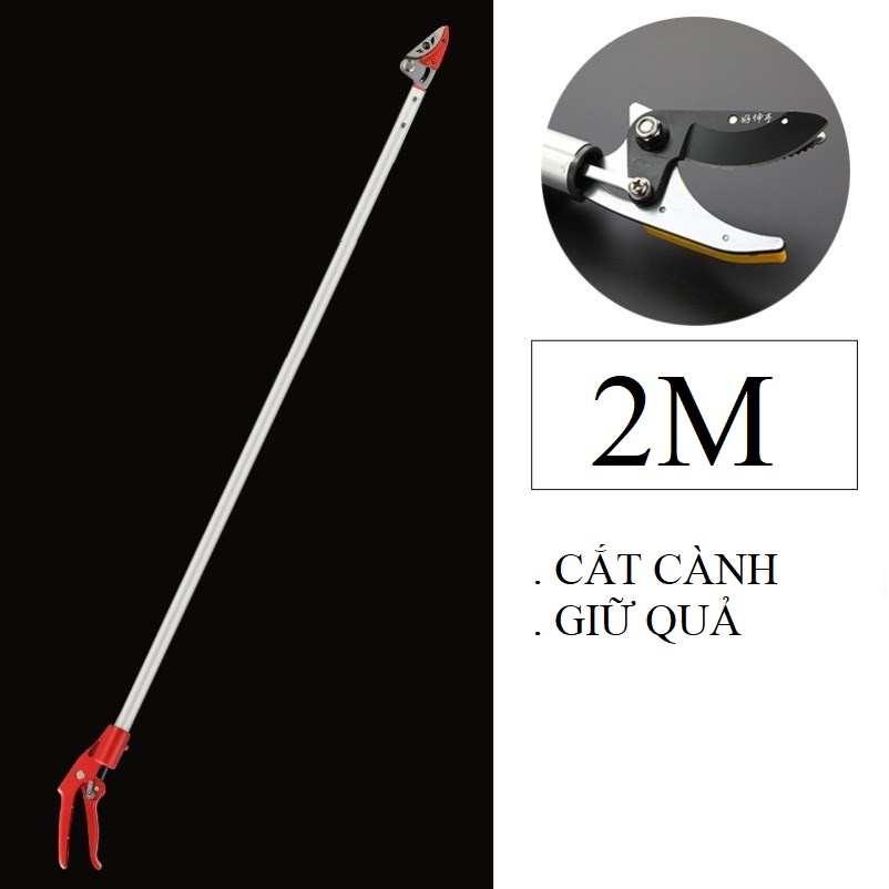 KÉO TỈA CÀNH HÁI QUẢ TRÊN CAO là một sản phẩm rất tiện ích đáp ứng được nhu cầu của các nhà vườn không cần phải leo trèo hay kê thang mà vẫn thu hoạch được hoa quả cũng như cắt tỉa những cành không cần thiết rất hiệu quả. Kéo được sử dụng bằng lực bóp của lõi thép rất nhẹ, có thể nối dài hay thu ngắn tùy ý của người sử dụng