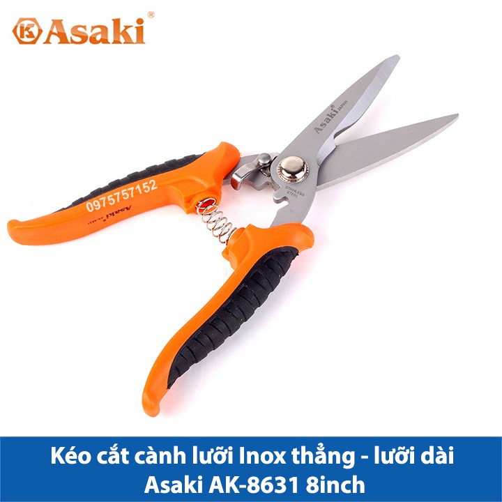 Kéo cắt cành lưỡi Inox thẳng - lưỡi dài Asaki AK-8631 8inch/200mm