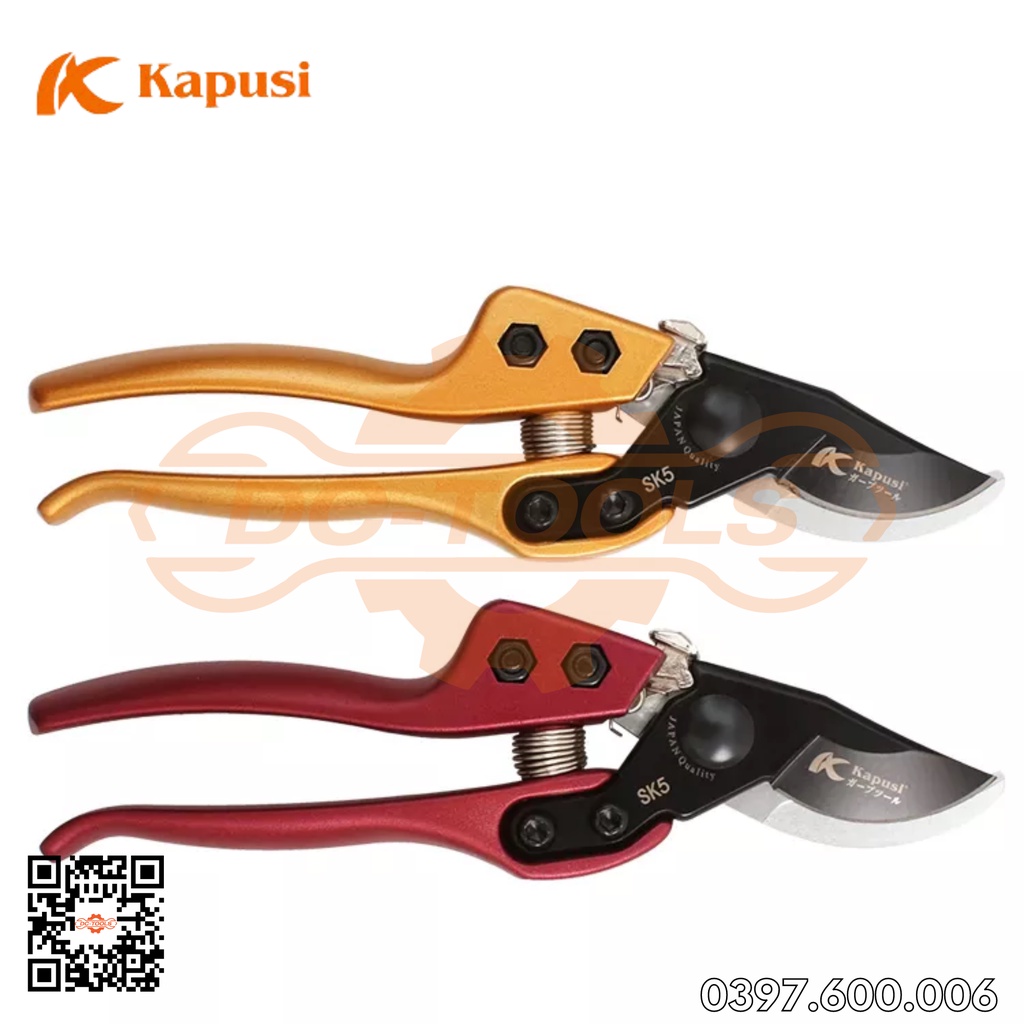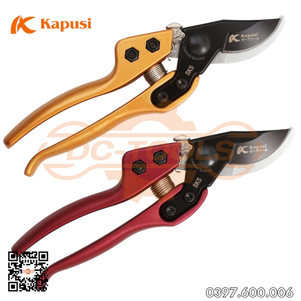 Kéo Cắt Cành, Tỉa Cây Cảnh Kapusi Japan Nhật Bản lưỡi thép SK-5 Vàng Và Tím K-8642 - siêu sắc chuyên dụng Đồ Nghề DC