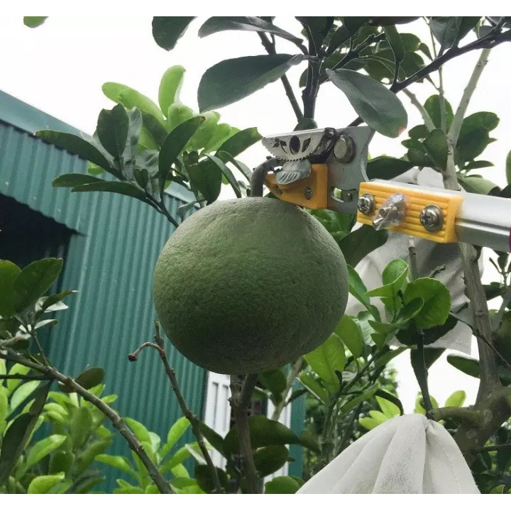 .Thu hoạch hoa quả : việc thu hoach hoa quả cũng khiến bà con mất rất nhiều thời gian và cũng nguy hiểm không kém gì công việc tỉa cành. Khi sử dụng Kéo cắt cành cán dài 4m và có kẹp kim loại nên khi cắt kẹp kim loại có thể giữ chùm quả rất chắc chắn mà không sợ bị rơi xuống đất.