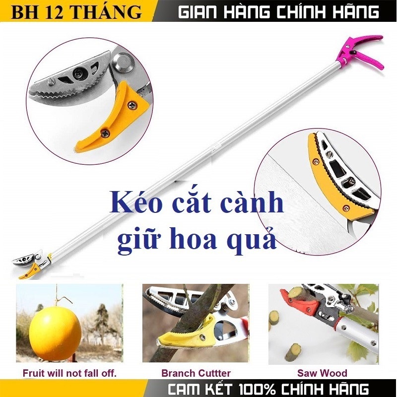 - KÉO TỈA CÀNH HÁI QUẢ TRÊN CAO là một sản phẩm rất tiện ích đáp ứng được nhu cầu của các nhà vườn không cần phải leo trèo hay kê thang mà vẫn thu hoạch được hoa quả cũng như cắt tỉa những cành không cần thiết rất hiệu quả. Kéo được sử dụng bằng lực bóp của lõi thép rất nhẹ, có thể nối dài hay thu ngắn tùy ý của người sử dụng