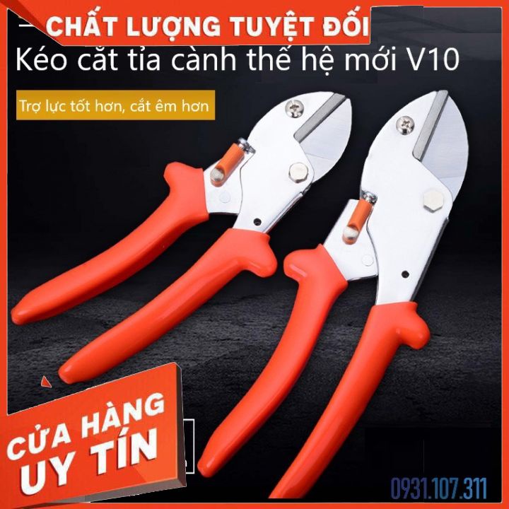 - Cắt tỉa cành cây, trợ lực tốt, thế hệ mới với lưỡi bén hơn và cắt ngọt hơn. Loại kéo V10 trợ lực tốt chuyên cắt cành lớn hơn loại kéo cắt cành thường. Là người bạn đồng hành cho công việc làm vườn cắt tỉa.