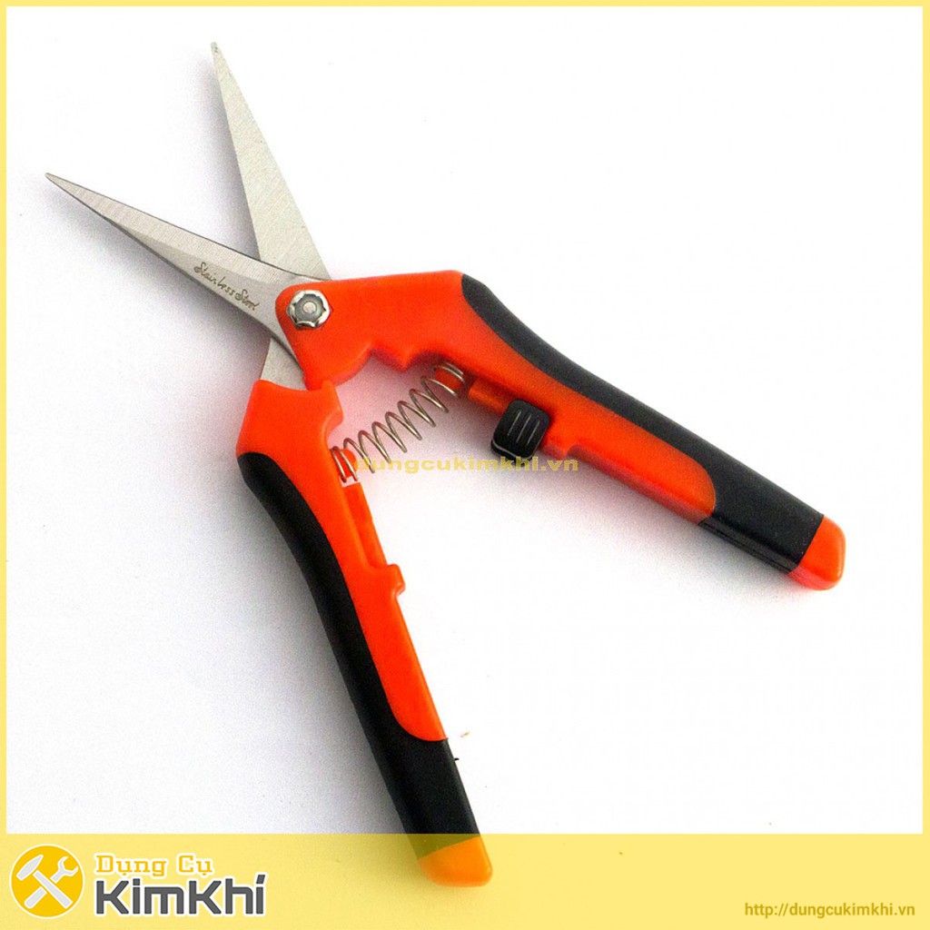 Tay cầm của kéo dài hơn lưỡi sẽ tăng lực cắt, cán được bọc nhựa dầy khi cầm nắm khá chắc tay, nơi tiếp xúc với tay được phủ 1 lớp cao su nên dùng kéo êm hơn và đỡ đau tay hơn. Thêm nữa, với cơ chế tự mở lưỡi do có lò xo ở giữa sẽ tăng hiệu năng làm việc, tay đỡ mỏi khi phải cắt tỉa liên tục. Kèm theo đó là lẫy khóa kéo khi không sử dụng nên việc cất giữ cũng rất gọn gàng ngăn nắp tránh được việc làm hỏng lưỡi hay lưỡi gây nguy hiểm trong hộp đựng đồ.