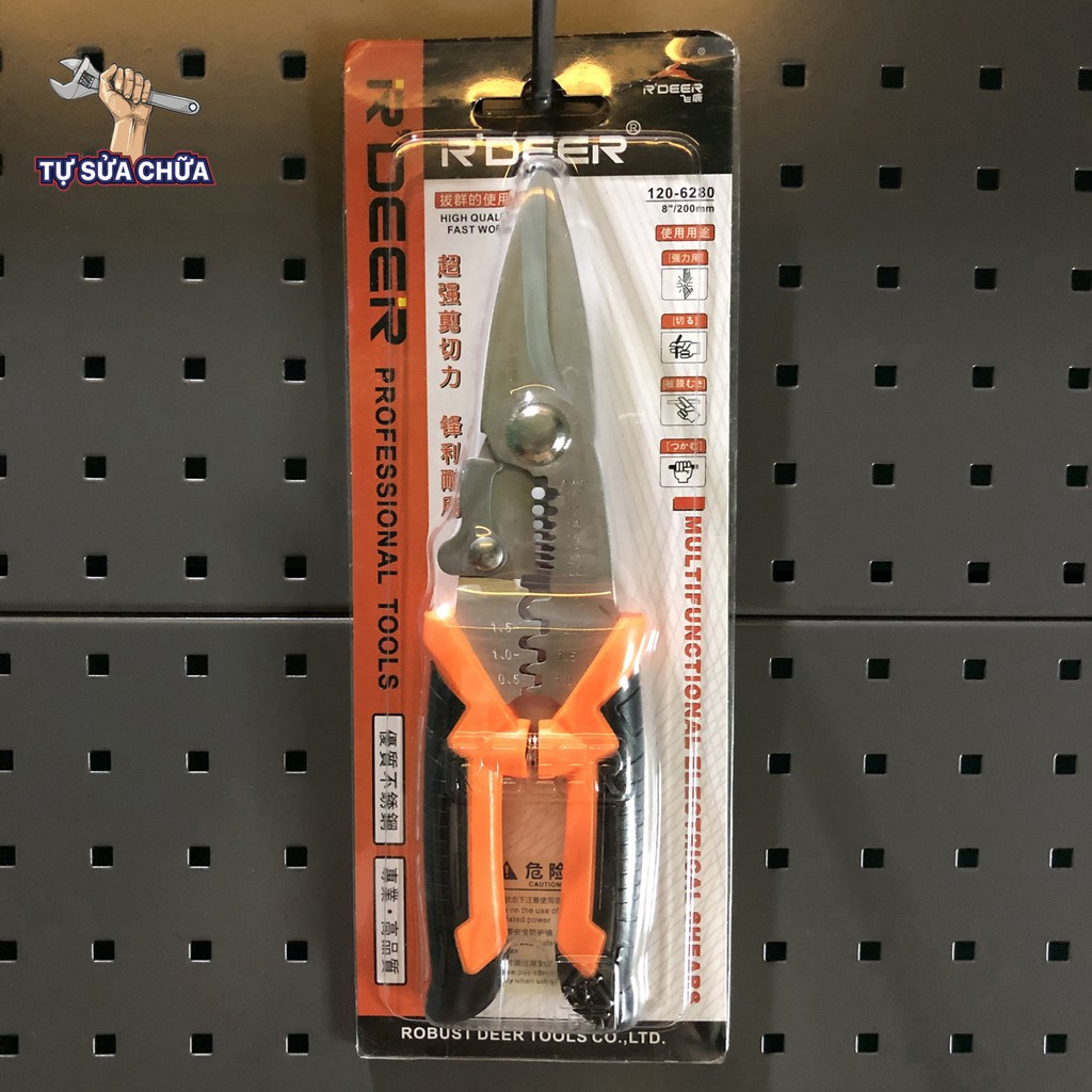 Nhà cửa & Đời sống > Dụng cụ & Thiết bị tiện ích > Dụng cụ > Kìm || Kéo cắt cáp, tuốt dây, bấm cos đa năng cao cấp R'DEER 120-6280 200mmCòn hàng