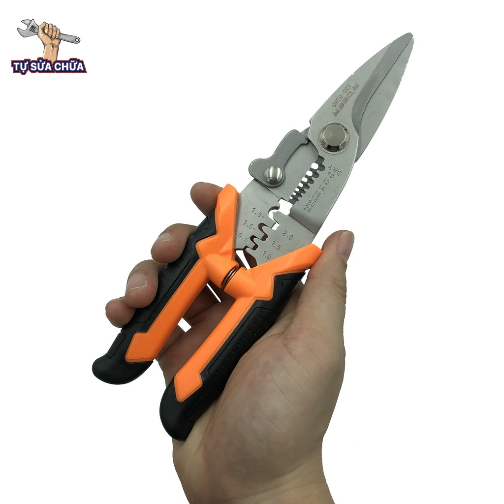 Giới thiệu Kéo cắt cáp, tuốt dây, bấm cos đa năng cao cấp R'DEER 120-6280 8"/200mm