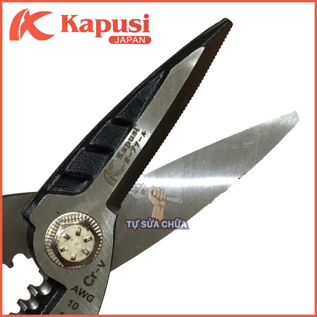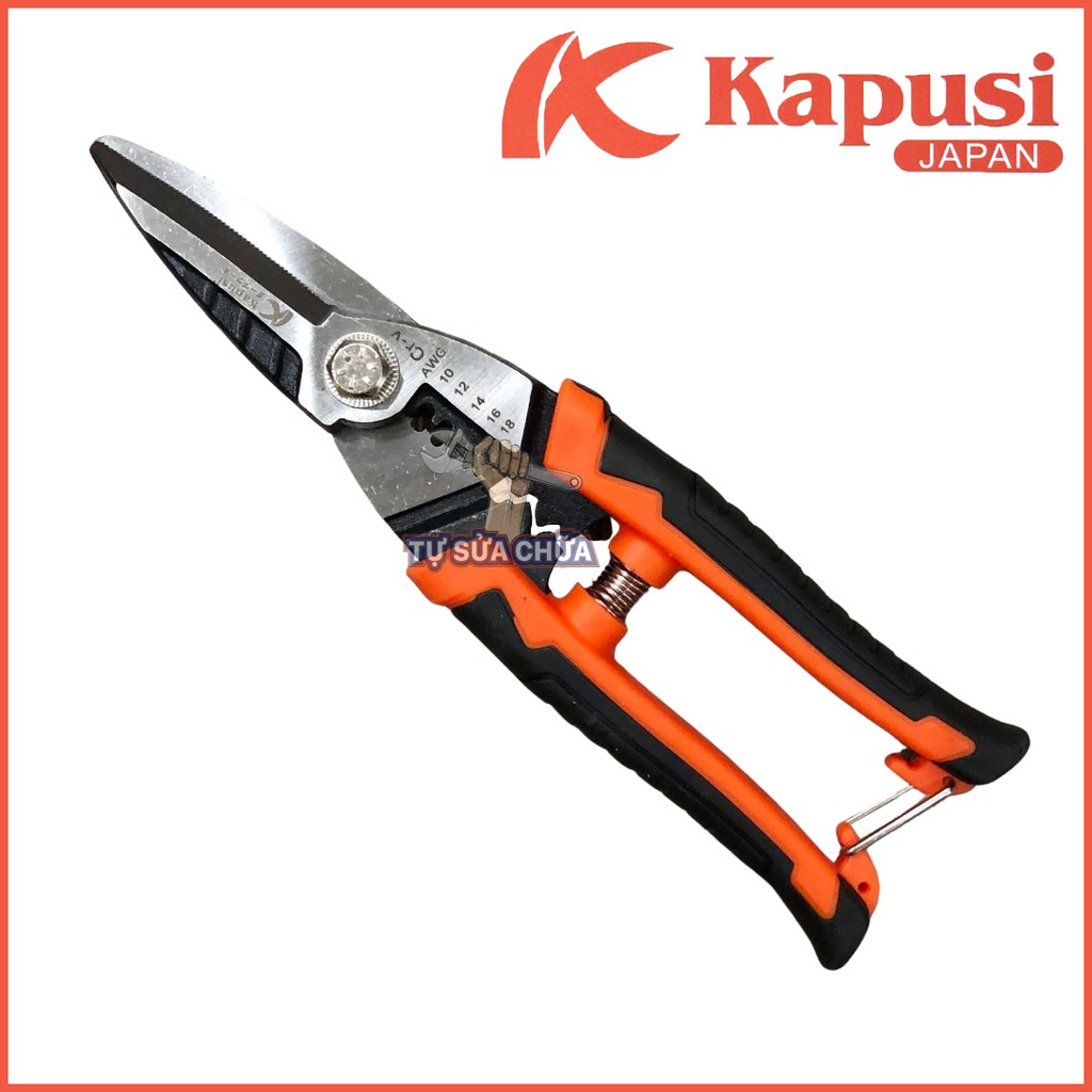 Kéo cắt cáp, tuốt dây điện, bấm đầu cos đa năng loại nhọn Kapusi K-9170