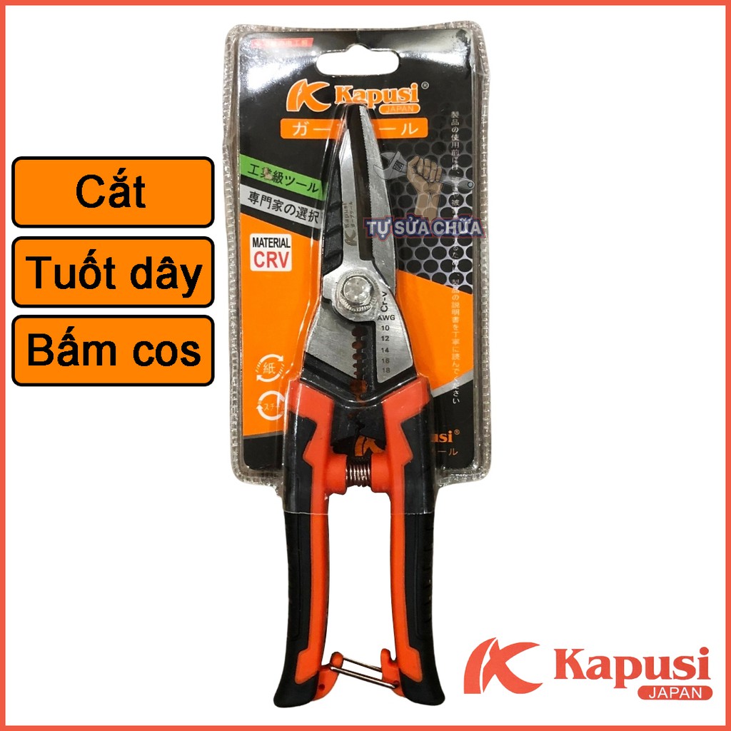 Nhà cửa & Đời sống > Dụng cụ & Thiết bị tiện ích > Dụng cụ > Kìm || Kéo cắt cáp, tuốt dây điện, bấm đầu cos đa năng loại nhọn Kapusi K-9170Còn hàng