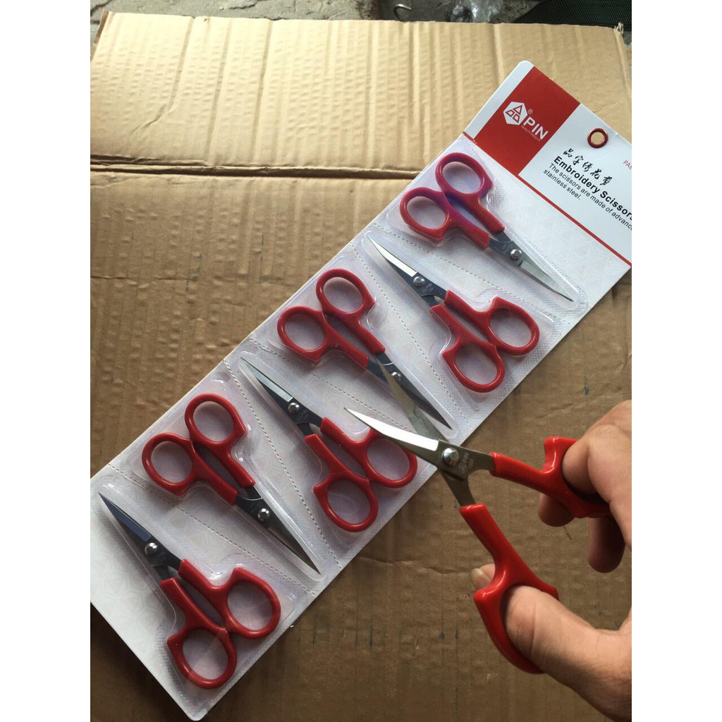 Kéo cắt chỉ bấm chỉ thêu mũi cong cán đỏ hiệu pin dài 13cm 6 cây 1 vỉ