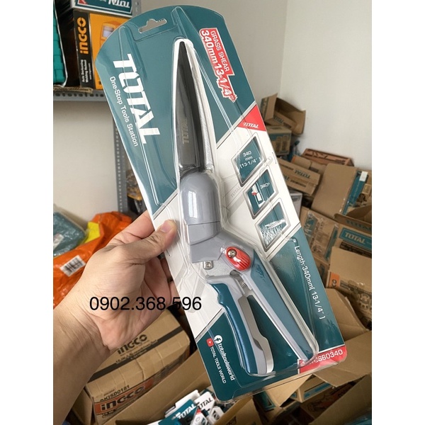 [ THTGS60340 ] Kéo cắt cỏ xoay 340 độ TOTALKích thước: 13-1 / 4 "/ 340mmKích thước lưỡi: 7 "/ 180mm. Khối lượng tịnh: 315gChịu nhiệt với lớp phủ chống dínhTay cầm ABS