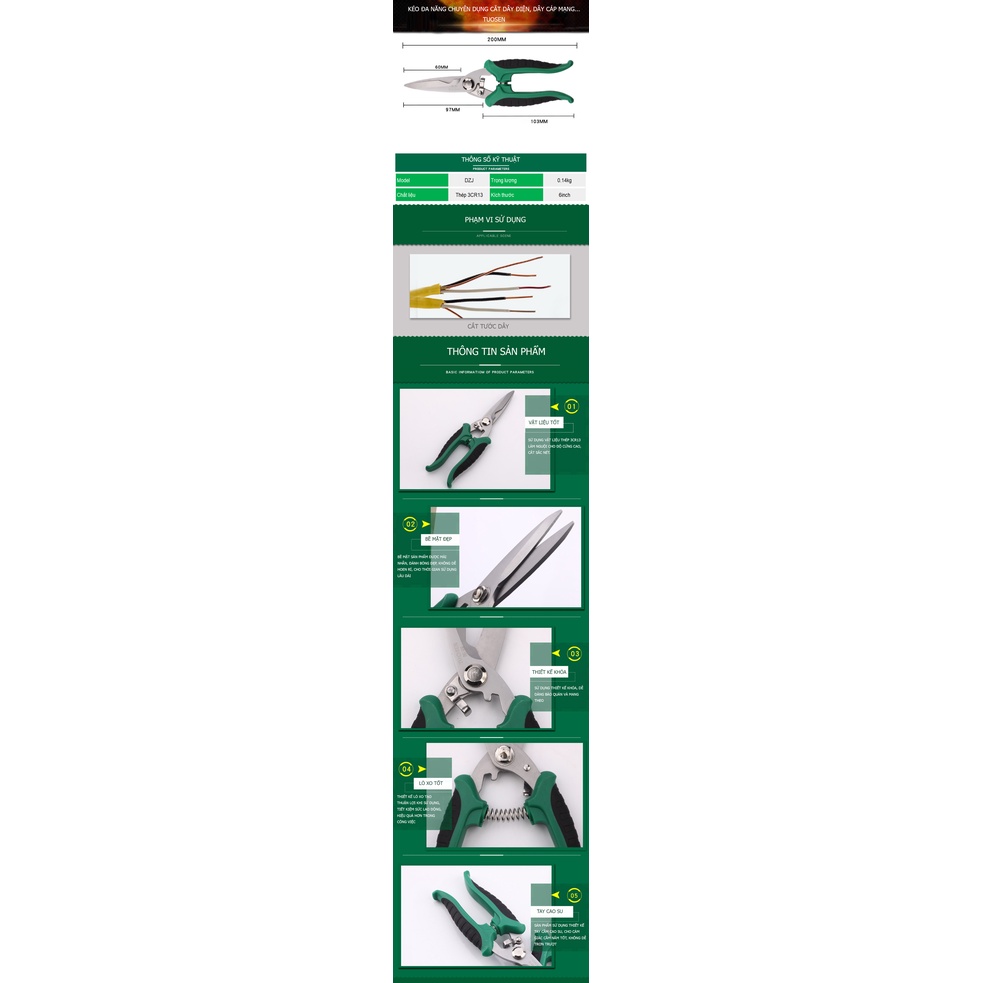Giới thiệu Kéo cắt đa năng chuyên dụng cắt dây điện, cắt dây mạng, kéo làm vườn ... tuốt tuồn tuột - TUOSEN (Mã DZJ)
